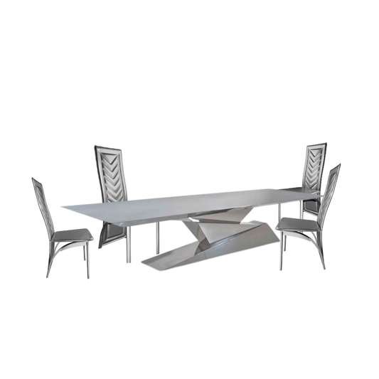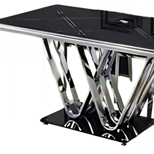 Inox Zone furniture is primarily made from high-grade stainless steel, known for its strength and resistance to corrosion. Our pieces often feature additional materials like tempered glass or marble tabletops, which are selected for their quality and complementary aesthetics.